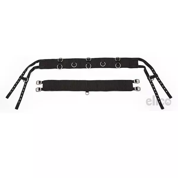 Fully adjustable training roller with metal dees for attachments and eyeletted straps, allowing for easy adjustment.