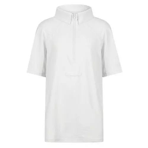 The Equetech Junior Parade Sho-Time Shirt is a Premium, Technical showing shirt, crafted from functional 4-way stretch wicking fabric, which allows freedom of movement and helps to keep you feeling fresh and cool all day. Features press button-down petite collar, loop tie stay with and easy-wear zip at neck. Machine washable. 90% Polyester/ 10% Elastane
