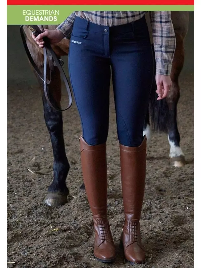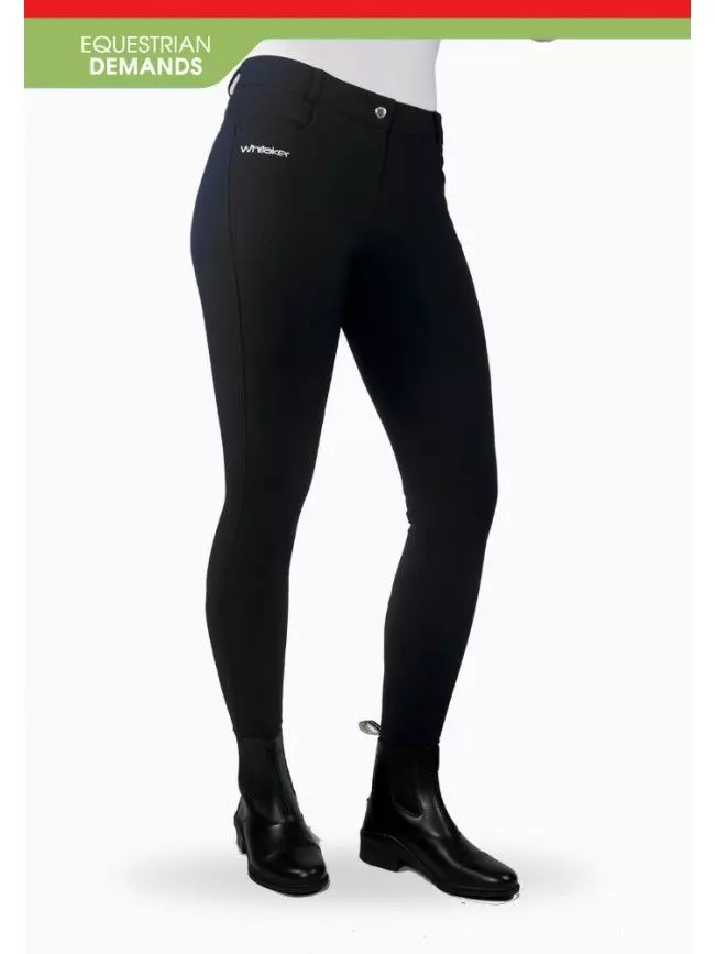 Ideal for competitions or everyday riding. The are made from a rich looking fabric consisting of 60% Polyester, 35% Viscose and 5% Spandex, this blend of fabric creates a comfortable, stretchy fit which has excellent opacity. The classic styling features Whitaker embroidery to the pocket and an ergonomic bean shaped suedette knee patch. There is a discrete tonal lycra ankle for extra comfort under long riding boots.