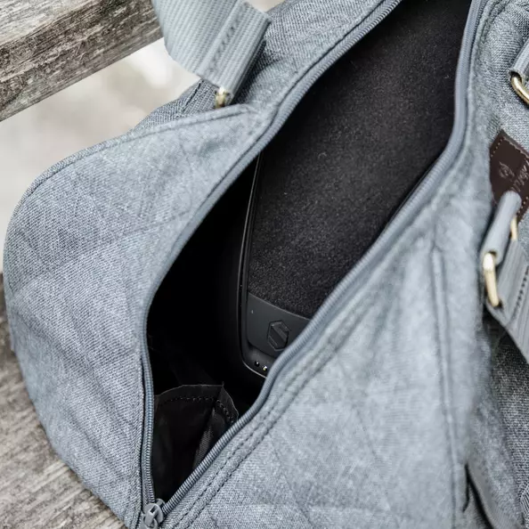The outside of the helmet bag is made from the chic quilted Kentucky fabric. The inside of the bag is lined with artificial rabbit skin that protects your helmet against scratches. Next to protection, the artificial rabbit skin also serves as a shock absorber. The carrying handles are finished with artificial leather, for comfortable transport.