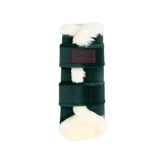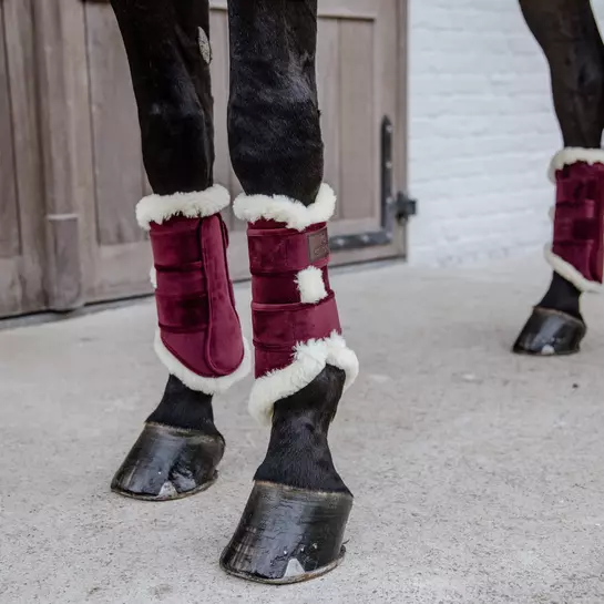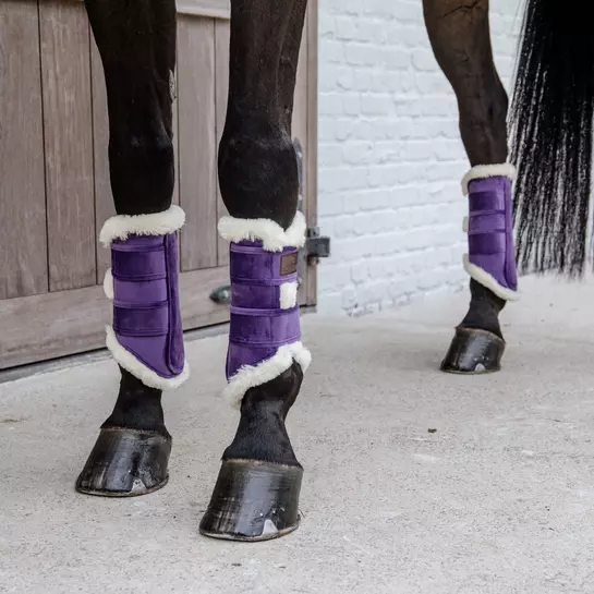 On the outside, the brushing boots are made of our famous velvet fabric. On the inside it has our well known luxurious vegan sheepskin lining that brings comfort and cushioning. The boots are sold in a set of two. They match perfectly with our saddle pad velvet contrast. The brushing boots are perfect for everyday training at home and hand walking. Anatomically designed with two secure elastic Velcro straps, these boots offer breathability and an easy-care label (machine washable at 30°, no dryer).