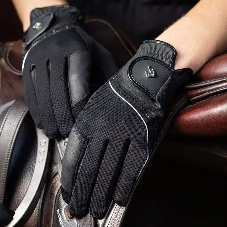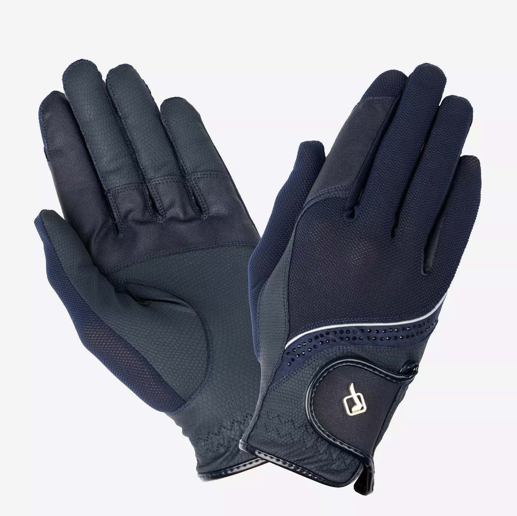 An eye-catching performance glove, with ultra-breathable mesh panel design and crystal diamante decoration.