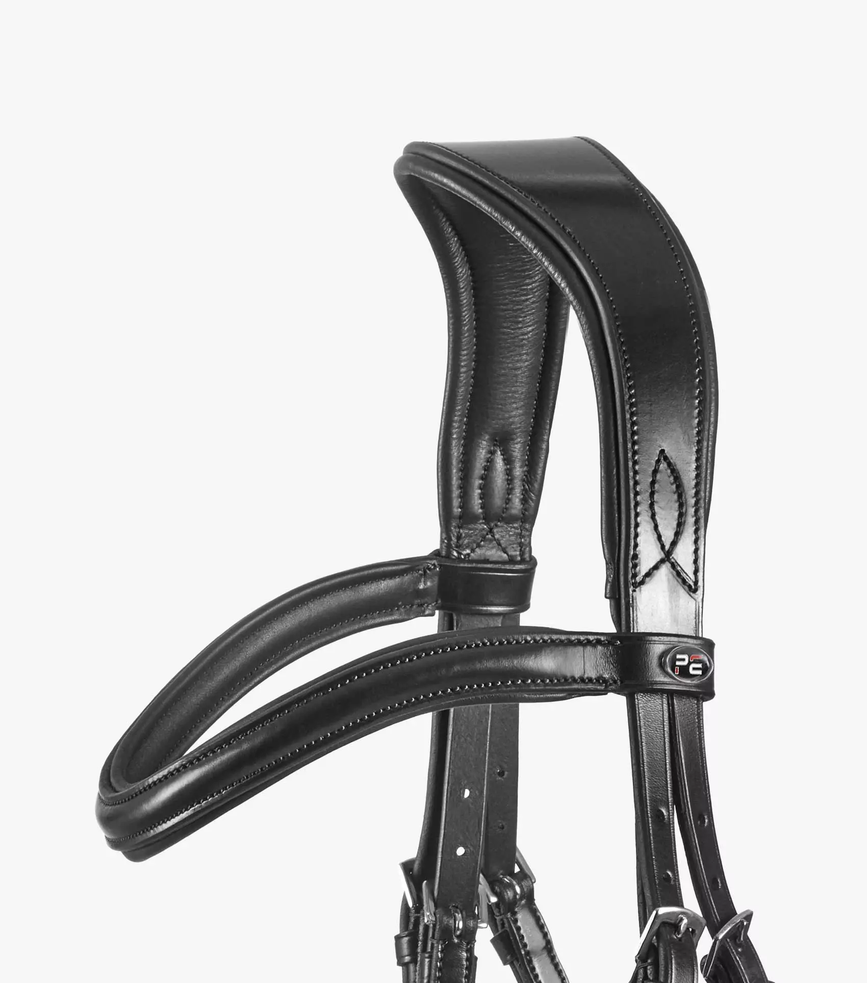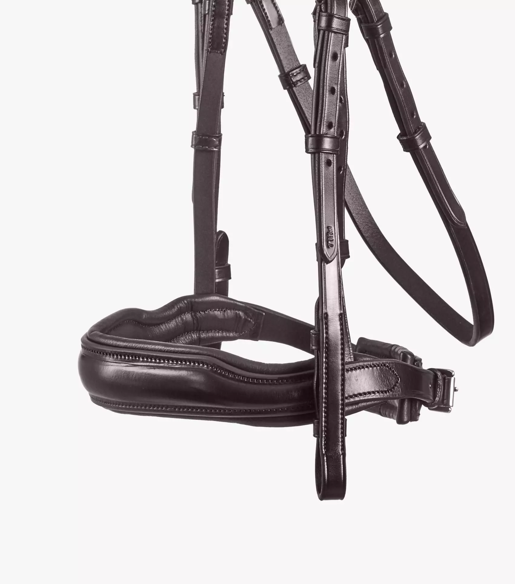 Constructed using high quality Italian leather this anatomic bridle has been carefully shaped to contour around the horse’s ears, nose and cheekbones in order to achieve a more comfortable and ergonomic fit. The anatomically shaped, padded poll piece is designed to distribute pressure over the less sensitive areas of the poll and away from the ears. The browband is also shaped to create definition and features a round raised design alongside soft padding.