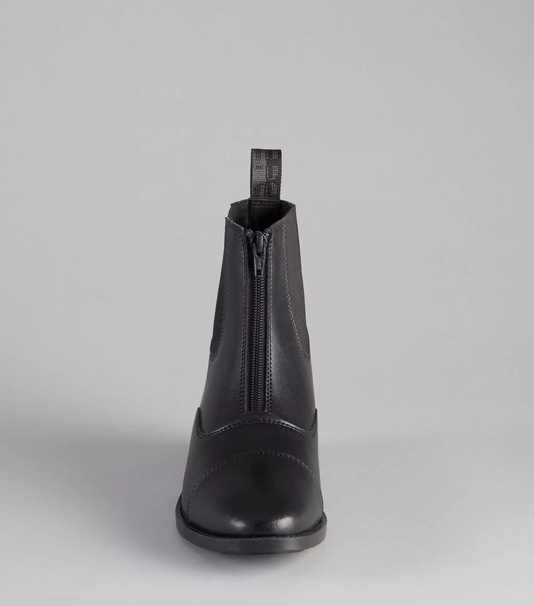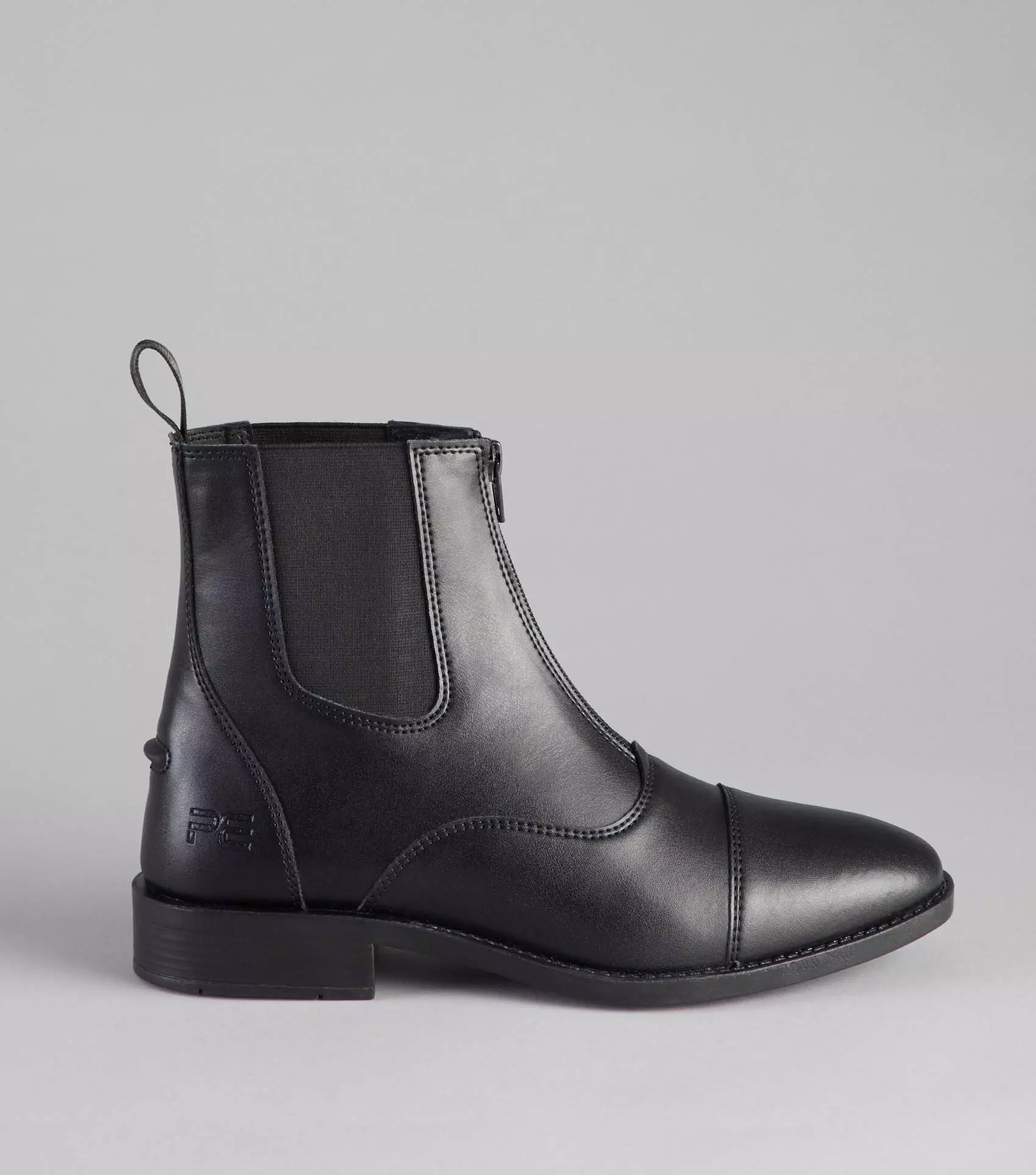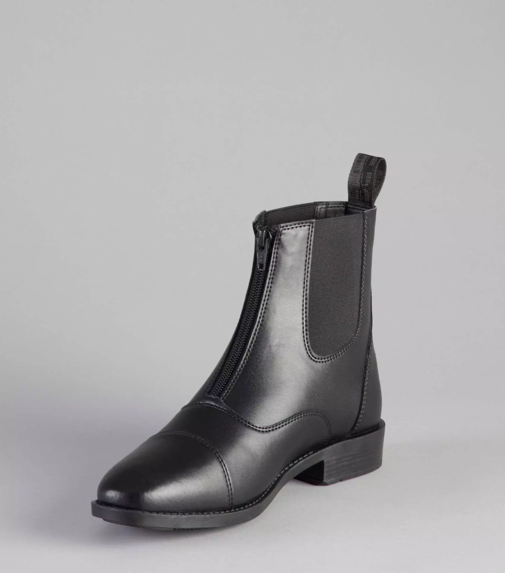 The front of the boot holds a durable YKK zip, which enhances the fit and easy removal of the boot.Elastic side panels improve comfort and flexibility around the ankle, making these synthetic horse riding boots perfect for use everyday. At the heel of the boot you will find a central spur rest above the embossed PE branding on the outside of the boots.