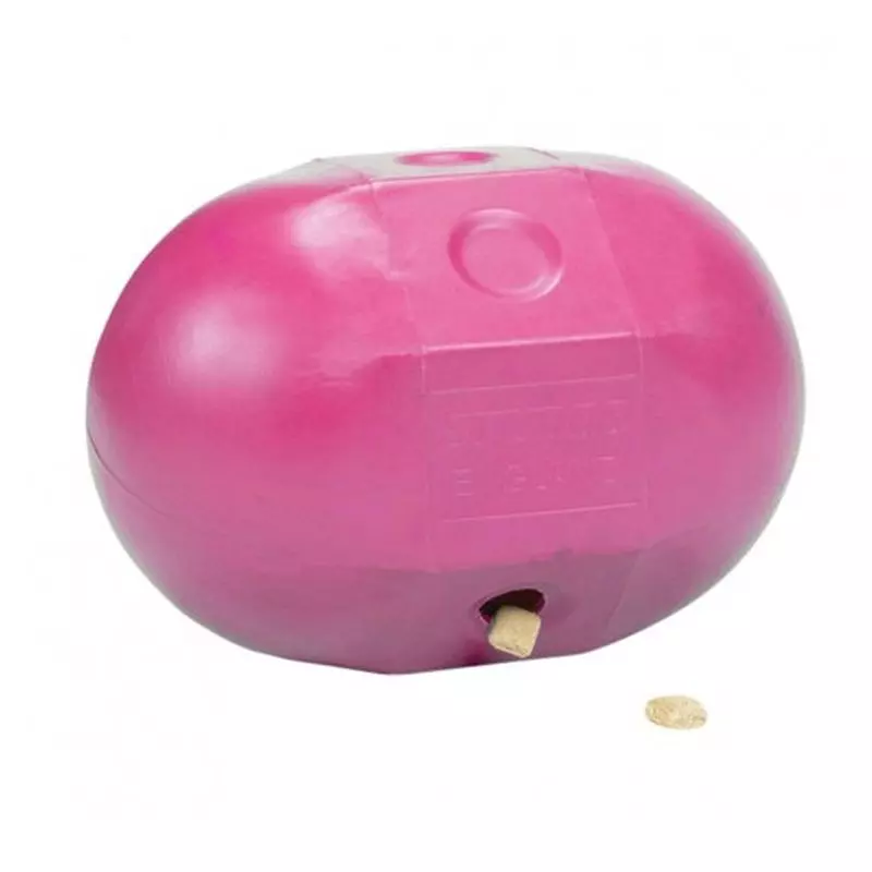 Combining a shape that is difficult to roll in a straight line with generous size, this dribble treat feeder will keep the horse very busy. The dispensing hole is 30mm diameter and suits most treats. With a separate built-in funnel, filling is easy and quick. Moulded from ultra-tough stubbythene, this toy is supremely durable.