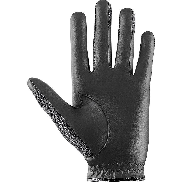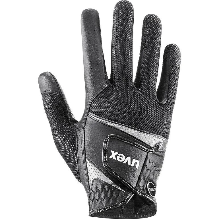 Moisture, slippery reins, high intensity for horse and rider – uvex sumair gloves have been designed exactly for these conditions. Non-slip polyurethane material on the palm is non-slip and especially durable to provide maximum grip and sensitive control of the reins. The breathable mesh material covering the outer hand and thumb quickly wicks away any moisture and ensures optimum ventilation. At the same time, the composition of highly functional materials creates a unique look: glossy synthetic leather, polyurethane and mesh in a wide range of colours add a high fashion factor. Black detailing and a clean sporty line make these gloves icons of style. With a short cuff, uvex sumair is the ideal glove for an elegant performance in the saddle even in warm weather.